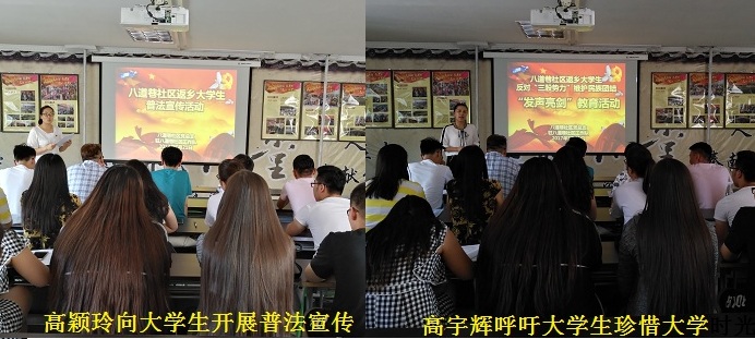清风网讯:(通讯员 沙永强)7月21日下午,阿勒泰市金山路街道八道巷社区党总支,地委政法委、地区邮储银行、地区团委驻社区“访惠聚”工作队联合社区团支部组织20余名返乡大学生开展“八道巷社区返乡大学生发声亮剑教育活动”、“普法宣传活动”和“返乡大学生观看《爱祖国 感党恩 听党话 跟党走》系列挂图”活动。