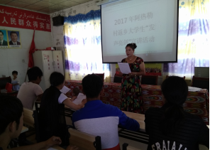 7月22日,为进一步做好返乡学生假期社会实践活动,给返乡学生创造交流思想、交流经验的平台,工作队组织14名返乡学生开展了“感恩祖国”座谈宣讲活动。工作队员阿米乃木·艾合买提为大家解读了“自觉增强民族团结 维护社会稳定”的重大意义。同时,返乡大学生苏力坦·穆尼热等五位同学谈了各自的感受,共同感谢党和国家对他们的培养,并表示学成归来为家乡的稳定和发展做出自己的贡献。