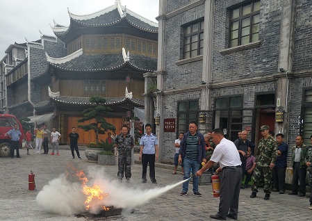 清风网讯:(通讯员 旧州镇科教文化中心 张玉良 赵家菊) 随着国庆、中秋、党的十九大召开在即,为全面提升各村安保工作,扎实有效做好国庆、中秋、党的十九大期间安保工作,9月28日,贵州省黄平县旧州镇在“且兰古都”舞阳社区开展迎接党的十九大消防安保“大练兵、大演练”活动。全镇17个村、社区的消防安全员、镇消防队共50余人参加演练活动。