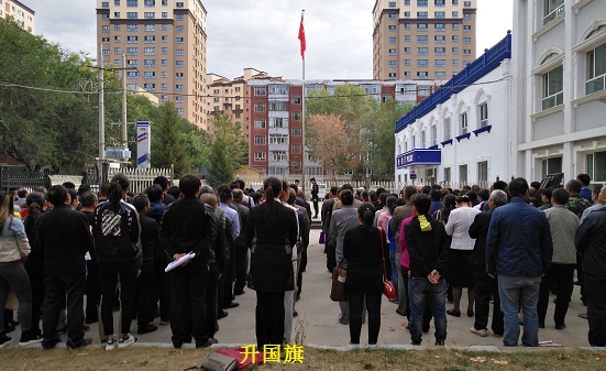 “十一”国庆节期间,工作队联合社区将组织工作队队员、社区干部、社区居民、辖区单位干部500余人参加升国旗活动。通过升旗,让各族居民看着五星红旗冉冉升旗,团结了辖区各族群众的爱国情怀、凝聚了各族干部群众向“三股势力”和“两面人”宣战的磅礴力量。