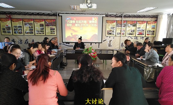 9月20日工作队积极组织工作队队员、社区干部、保洁员、居民代表等40余人开展“聚焦总目标,献礼十九大”大讨论。通过专题大讨论社区干部更加明确了自己在实现新疆“社会稳定和长治久安”中的职能职责,大家将干好本职工作、做好群众工作、排查各种隐患,为党的“十九大”的胜利召开贡献基层力量。