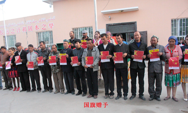 “访惠聚”工作队入户走访中将崭新的国旗赠予了每户村民,家家门口都飘扬着鲜艳的五星红旗,促使他们深切感受到了祖国大家庭的温暖,为庆国庆营造了节日氛围。