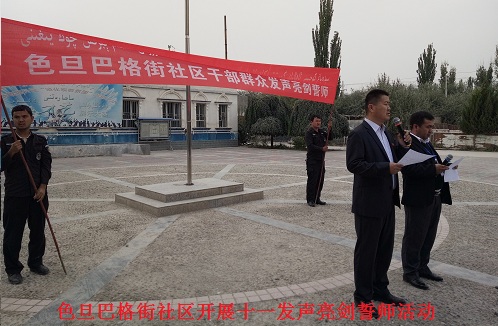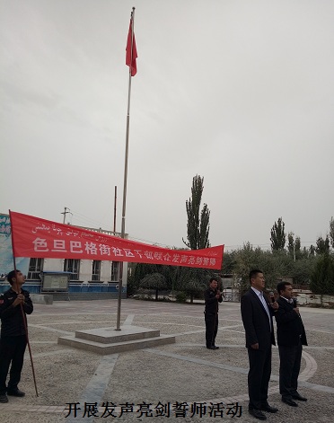 升国旗仪式由社区党支部书记樊新立主持,他倡议广大党员干部要以“两学一做”学习教育为契机,扎实推进“学、转、促”活动的落实,广大党员干部要主动亮身份、作表率、当先锋、树形象,以一名优秀党员的形象,争做维护民族团结和社会稳定的模范;各族党员干部群众要把维护社会稳定和谐作为每一个公民应尽的责任和义务,积极加入到保护和建设好自己美好家园的队伍中来,各族干部群众要像石榴籽一样紧紧抱在一起,像爱护自己的眼睛一样爱护民族团结、像珍视自己的生命一样珍视民族团结,争做遵纪守法、邻里团结、讲文明树新风的好公民。