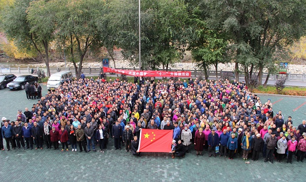 今年是中华人民共和国成立68周年华诞,早晨10时,社区全体干部、居民群众、个体工商户意见辖区单位的职工们在便民警务站副站长的统一指挥下自觉肃立,面对五星红旗来迎接这一庄严时刻。“起来!不愿做奴隶的人们!把我们的血肉,筑成我们新的长城!……”所有人高唱“国歌”“歌唱祖国”。升国旗、唱国歌完毕,居民们手持国旗,高举“祝福伟大祖国繁荣昌盛,国泰民安!”的标语在国旗下全体合影,场面一片沸腾。好一幅喜庆热闹的和谐图景!