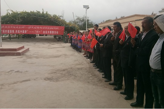 清风网讯:(通讯员 阿克苏地区妇联 高婷)10月1日早上,按照统一要求,驻村工作队组织托万克格西木艾日克村全体村民、驻村工作队员、村警、协警和驻村管寺干部等共计596人,举行了“同抒爱国情·共筑中国梦“升国旗仪式,开展了发声亮剑、集体宣誓活动。