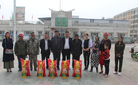 10月2日上午,沙雅镇英巴扎社区共驻共建单位沙雅县维吾尔医院一行4人来我社区开展“国庆节、中秋节”节前慰问活动。该院4名干部看望慰问了我社区辖区内5户贫困户,并为困难群众送去了节日的祝福和慰问品,带去了党和政府的亲切关怀。