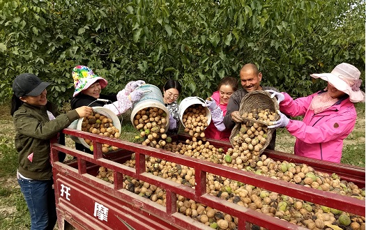 采收完后,艾山高兴的说“很感谢你们的帮助。家里今年6亩核桃树虽然小,但管理得好,结的核桃多,个头也大,还算不错,晒干后预计能卖到八九千元。”