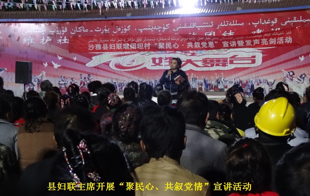 清风网讯:(通讯员 沙雅县妇联 张方成)10月5日晚,沙雅县妇联在对口帮扶村塔里木乡墩阔坦村开展“聚民心 共叙党情”宣讲暨发声亮剑活动,县妇联全体干部、驻村工作队、村党员干部及广大农牧民群众共计300余人参加了本次活动。