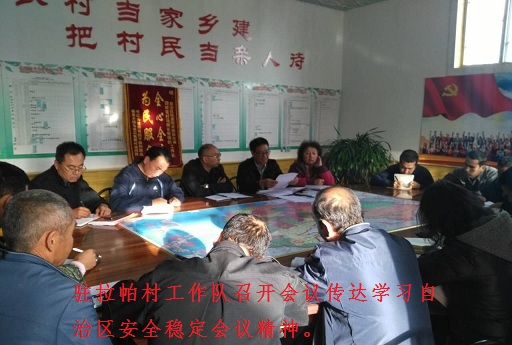 一是抓好思想教育,切实统一思想,提高做好群众工作是维护社会稳定工作的重要一切的意识。驻拉帕村工作队两次召开全体驻村工作队员、村“两委”班子成员等人员参加的传达自治区稳定会议精神大会,对陈全国书记的“四句话”、“四件事”等内容进行认真学习和深刻领会,切实将思想统一到聚焦总目标,喜迎十九大上来。