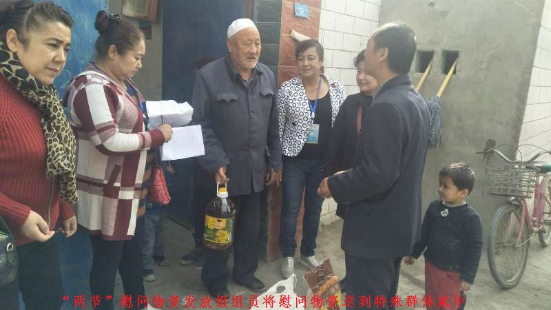 身患严重妇科病的阿依古丽大嫂拉着工作队员热孜瓦古丽的手感动地说道:“我年龄大了,身体不好,孩子又不都在身边,你们亲自将节日慰问品给我送来了,还帮我打扫房间、洗衣服、做饭等家务事,让我心里暖暖的,你们就是我的亲人,就是党和政府派来的天使”。