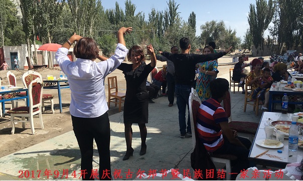 在每周一升国旗仪式、村民代表大会,党支部会议等会议上他多次强调民族团结的重要性。经常告诉干部大家一定要搞好民族团结。在走访入户中、平时闲谈中要多宣传民族团结这方面的东西。干部要以身作则一定不要做伤害民族团结的事,说伤害民族团结的话。他多次以社区名义组织开展民族团结活动。2017年5月13日开展“话团结,讲贡献,同吃一碗民族团结饭”活动。2017年9月4日开展:“欢庆古尔邦节暨民族团结一家亲”活动。得到了积极反响,群众纷纷表示希望社区能多开展一些这样的活动。2017年9月9日幸福街2巷30号居民艾则孜赛买提全家来社区邀请社区全体人员去他们家做客。以此感谢书记经常对他们宣讲九项惠民政策的具体内容,让他们享受到了应该享受的权利,对国家的政策有了更清晰的了解。艾则孜赛买提说:“书记就像我的亲哥哥一样,平时有困难向他请教,他都耐心的给我说解决办法,心情不好也会找他谈谈心”。他总是谦虚的说:“这是我应该做的”。