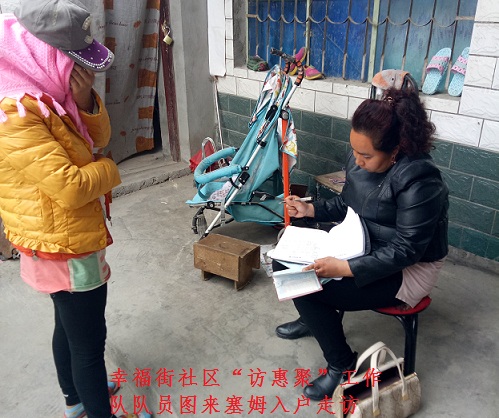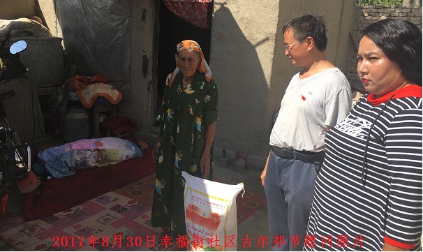 我社区目前还有低保户55户,人数多,脱贫任务艰巨。他总是鼓励大家说:”低保金每个月有限,远不能满足生活需要,大家一定要学会自力更生。”对于老弱病残每逢节日,他都会亲自去慰问。对于年轻力壮没工作的为他们想办法找工作,有工作的给他们打气,给他们鼓励。辖区青年热合曼·艾力没有工作,妻子在家带小孩,生活困难,了解到这一情况后,他为其联系了一份快递公司保安的差事,热合曼·艾力说:“太感谢您了,我太需要这份工作养家了”。他说:“这都是我应该做的,希望你们的生活能越过越好,”。幸福街5巷9号努尔比亚木亚库甫没有工作,他为其联系了一份超市收营员的工作。春季还为13户居民居民联系阿拉尔市的地老板,最后13人都与地老板签订管理地合同。居民都说有了幸福街书记我们的日子越来越幸福。
