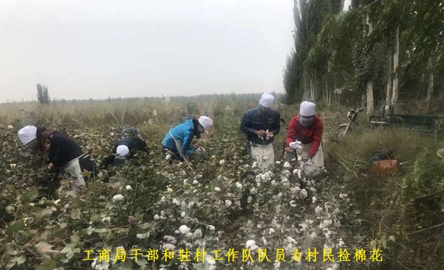 沙雅县工商局干部自下村以来,在同工作队队员一起入户走访的过程中,同队员一齐对走访入户信息进行梳理,及时解决村民燃眉之急,帮助村民解决实际困难。通过走访,得知3组村民艾力木汗·阿吾提家里仅有一人,年事已高,棉花拾捡第一遍还没有完成。经大家商讨,县工商局干部和驻村工作队队员决定帮助艾力木汗·阿吾提捡棉花。一早,大家就来到棉花地里,开始拾捡棉花。中午,艾力木汗·阿吾提老人为感谢大家帮助他捡棉花,邀请到家里去歇歇脚,大家纷纷婉言谢绝。工商局党组副书记董茂菁说:“捡棉花,也是我从小就干过的活。现在能下乡给村民捡点棉花,这是我和大家能做的,只要你们满意,我们也就开心。”