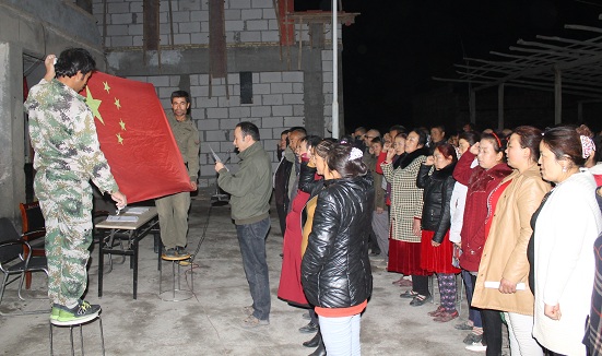 宣讲结束后, 127名党员干部、农牧民群众面向国旗,庄严肃立,铮铮誓言掷地有声,作出“自觉维护民族团结,抵制宗教极端思想,用实际行动维护社会稳定和长治久安”的承诺。最后全村党员干部群众一起唱“没有共产党就没有新中国”后把活动全部结束了。