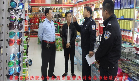 济南济阳县崔寨派出所配合食品药品监管所对食品市场进行排查