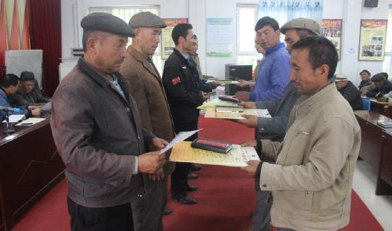 库木墩村10月份新轮值长和9月份轮值长进行工作相互交接
