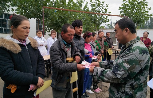 “驻村工作队对困难群众进行帮扶,解决了我们的燃眉之急,村民们期盼幸福生活一天比一天好,工作队队员们个个都是好样的。”村民穆合塔尔·卡斯木拿着帮扶的1000元激动的说.