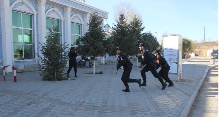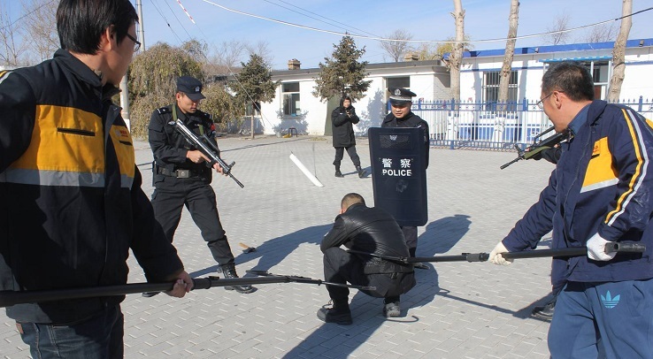 演练模拟2名暴徒翻越围墙进入车站内部,意图破坏铁路设施设备,车站执勤民警发现可疑人员,立即对其进行先期处置,终止其破坏行为并通报派出所,派出所备勤民警立即出警赶赴现场支援。同时快速启动路地联勤联动机制,将警情通报路地联勤联动办公室,阿旗公安局特警大队立即对车站附近开展日常巡逻的特警PTU巡逻车发出指令,要求其立即前往支援。经双方协同配合,于查布嘎火车站站台将两名负隅顽抗的暴徒予以制服。
