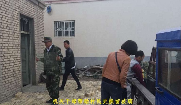 看到这一情况后,局机关干部周青主动联系当地建材商店及施工人员,与同事共同筹集费用,购买玻璃、雇用施工人员,为“亲戚”亚森·卡斯木更换窗户玻璃、打扫庭院、收拾房屋。经过一天的劳作,窗户焕然一新,院落平整整洁,房屋干净暖和,亚森·卡斯木愁容舒展,笑容满面。