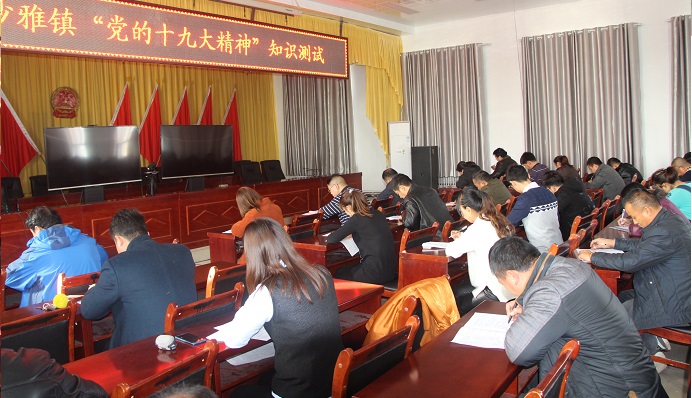 11月25日下午,沙雅镇在机关四楼会议室组织开展“党的十九大精神”知识测试,科级领导干部、“访惠聚”驻村工作队、驻村管寺、机关留守干部共计65人参加,同时沙雅镇16个村(社区)组织本村(社区)领导、干部、机关下沉干部在会议室同时进行。