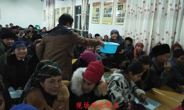 主持人评判认为答题通过的村民,村干部、工作队现场发放盆子、洗洁精、冰糖、毛巾等日常家庭生活用品,此次竞赛方式深受村民喜爱,在娱乐中学习十九大精神。