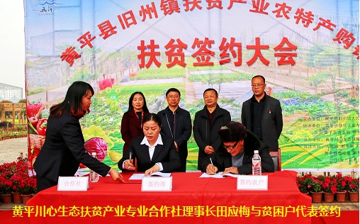 在当天的签约仪式上,黄平县人民政府、县政协和旧州镇党委政府的领导还到会祝贺。在热闹的氛围中,黄平川心生态扶贫产业专业合作社总经理田应梅与190余名村民代表着500户贫困户,在案桌上挥笔签订了《黄平县扶贫帮扶贫困农户农特产品预约生产购销协议》。从此通过公司+合作社+贫困户的经营模式,企业将对每一种既定农产品按高于当地市场10~20的价格进行收购。