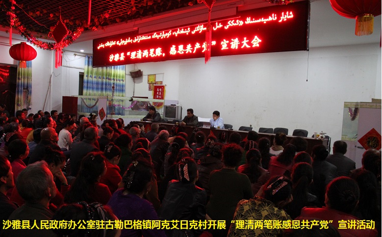 清风网讯:(通讯员 沙雅县政府办 赵燕青)3月13日晚,沙雅县人民法院院长吾斯曼·吐尔逊来到阿克艾日克村村民活动服务大厅,为阿克艾日克村村民带来了一场“理清两笔账、感恩共产党”宣讲大会。