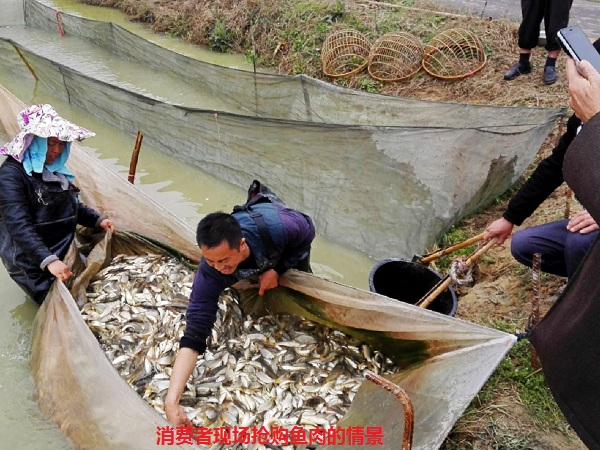 贵州省黄平县旧州镇水库女村民张雪飞从旧州镇波洞村搬迁到文丰村以后,自筹资金先后投资30多万元承包和整合村民责任田120亩粮田开展稻养鱼,去年在丰收丰产的基础上,最近又从田间捞回了“大桶金”,满般满仓的鲤鱼让消费者在抢购选择大小中不知所措,乐得夫妻二人喜笑颜开,收入不言而喻。(潘家文)