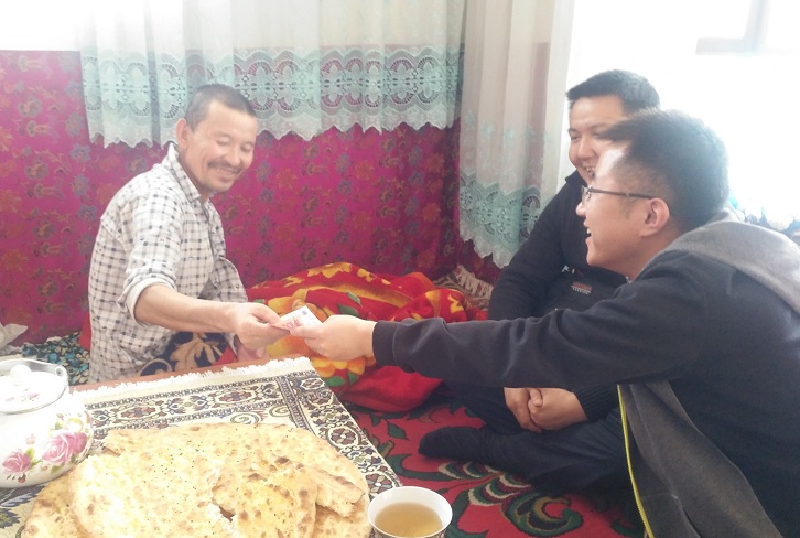 3月15日阿和尼亚孜出院回家养伤,工作队来到他家探望。阿和尼亚孜·卡依木对工作队说:“医生说住院费用昂贵,既然手术做完了就回家休养······这次意外把我辛苦几年的积蓄都花完了,以后我们可怎么办啊?”阿和尼亚孜·卡依木大病未愈,又花了这么多血汗钱,情绪比较低落,工作队很理解他的心情,告诉他和他的妻子:“现在都有新农合,我们工作队会积极联系保险公司帮助报销一部分医疗费用的,同时也会帮助阿和尼亚孜申请大病医疗救助。至于其他像春耕的事,有任何困难都可以来找工作队。”临走的时候工作队给了阿克尼亚孜500元慰问金,让他好好养伤。阿和尼亚孜·卡依木的妻子感动得哽咽着说“幸亏有党支部和工作队在,不然往后的日子真不知道该怎么过。”