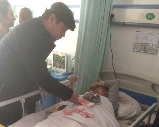 阿和尼亚孜·卡依木时沙雅县塔里木乡拜什拖格拉克村村民,在2月底骑摩托与一辆轿车相撞,当时立即送到库车县医院,因伤势过重转往乌鲁木齐新疆医科大学治疗。事故发生之后,拜什拖格拉克村党支部书记艾海提·依明立即动员号召工作队、村两委和村民为躺在病床上的阿和尼亚孜·卡依木捐款,大家纷纷伸出了援助之手,献出了自己的爱心,共筹款7680元,并派村里“四老”人员代表工作队和村两委在第一时间去医院看望阿和尼亚孜·卡依木,将筹集的爱心款交到阿和尼亚孜手中。