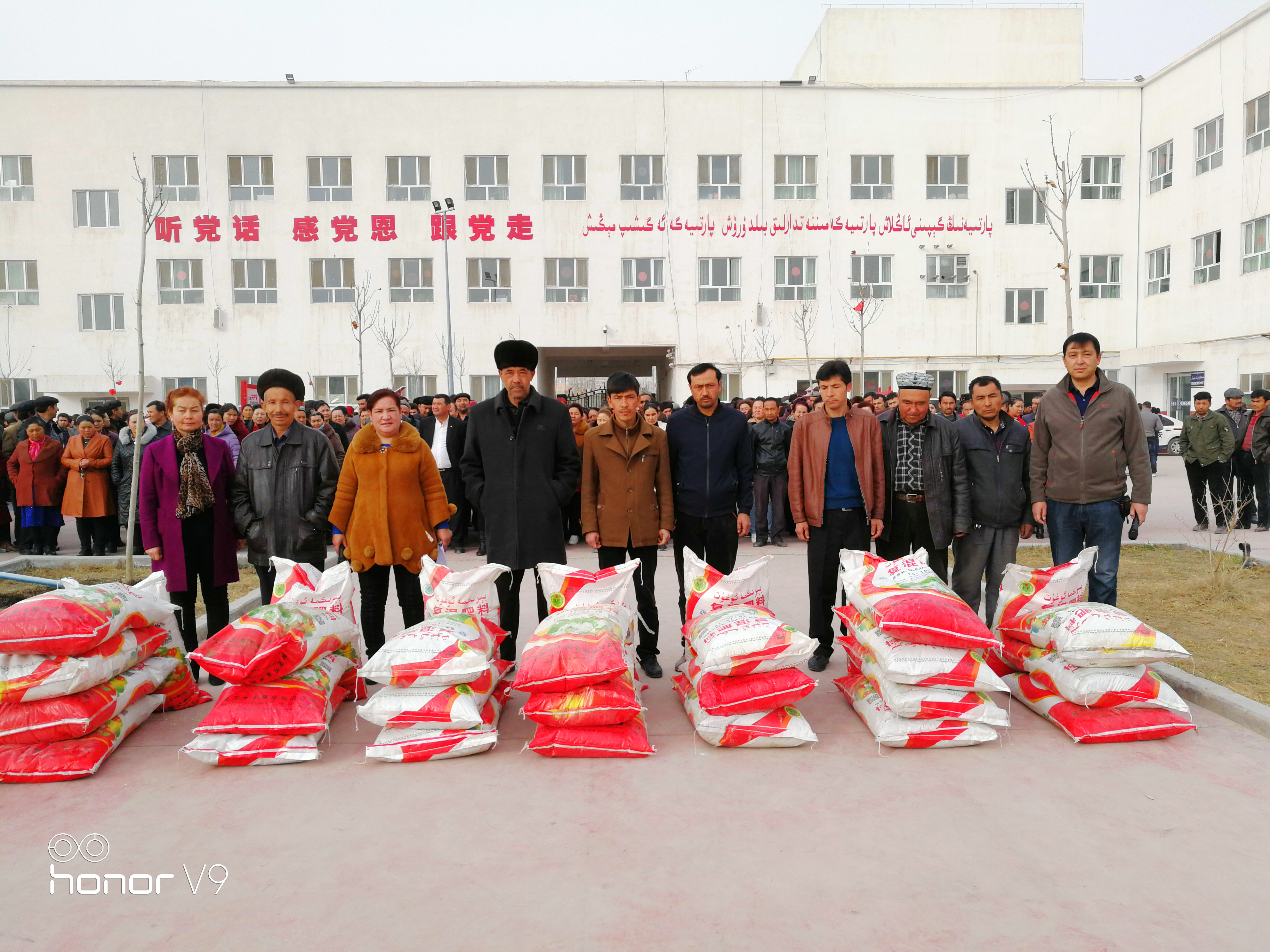 “有了这些袋尿素,今年就够我5亩地用了,感谢工作队想着我帮着我”花园村8网格的马热亚木·纳斯尔克说到。