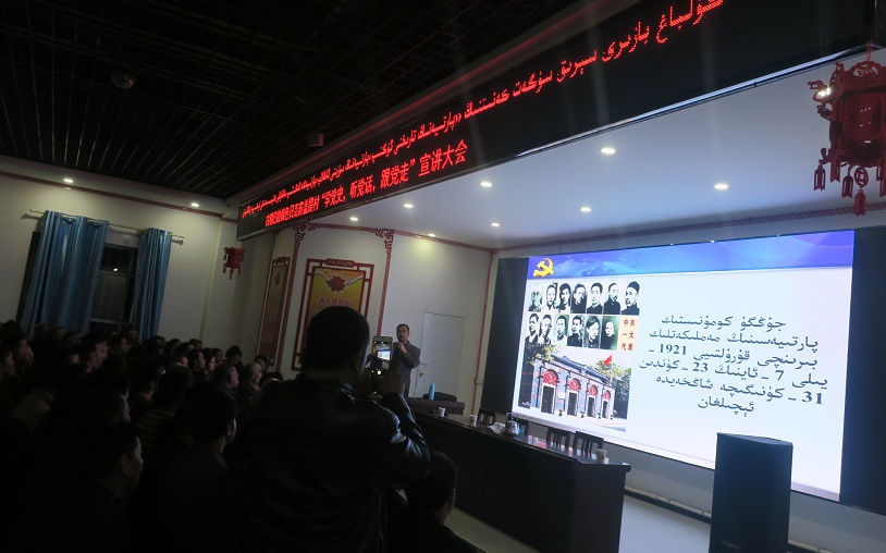 沙雅县党校克热木老师通过PPT以图文并茂的形式,向现场村民宣讲了党史知识:从中共一大到十九大,中国共产党不忘初心、矢志不渝,义无反顾肩负起实现中华民族伟大复兴的历史使命,团结带领人民进行新民主主义革命、社会主义革命和建设、改革开放和现代化建设伟大事业,宣讲了十九大精神和党的惠民政策。