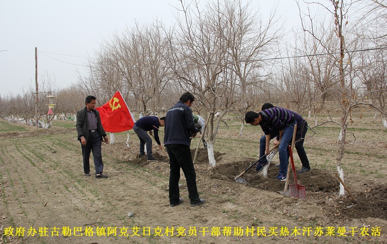 买热木汗·苏莱曼是阿克艾日克村2组村民,家中只有她和年幼的孩子,前几天,在县城餐馆打工的她,不小心扭伤了脚,无法干重活,想到农时不能耽误,自己又不能干活,买热木汗着急不已。通过下沉干部入住后反馈的信息,工作队了解了买热木汗的困难诉求,二话不说就组织党员干部来到了买热木汗家的地里,解了她的燃眉之急。
