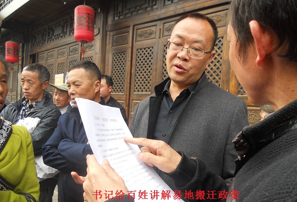 活动现场,一下子来了三四百人,围着宣讲台;一边认真听工作人员易地扶贫搬迁政策的宣讲,一边领取工作人员发的旧州镇“十三五”时期易地扶贫搬迁政策宣传资料,边听边看,有些群众遇到看不懂的地方,就直接跑到咨询台边去问书记去了。这下又把镇党委书记忙了起来。书记他认真接待每位来咨询的贫困人员,并详细地向他们讲解旧州镇“十三五”时期易地扶贫搬迁政策知识。从搬迁的条件、搬迁安置补助标准、安置房建设或购置标准、搬迁对象的识别登记和申报程序、搬迁贫困户申报登记所需资料、选择旧州镇冷水河移民安置点的突显优势、申报登记、咨询联系方式等七大部分一一的给百姓解释,让每位贫困人员都喜笑颜开的听完了解这次旧州镇“十三五”时期易地扶贫搬迁的优惠政策。