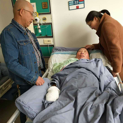 3月17日上午,又有爱心团队的代表来到宁波市第二人民医院看望慰问鲁亚娟,并为她送上了余姚市小强公益服务中心募集而来的10033元爱心款,祝愿她早日康复。陪护在鲁亚娟床前的妹妹拉起夏平高、郑方君两位热心人士的手,又激动得说不出话来。