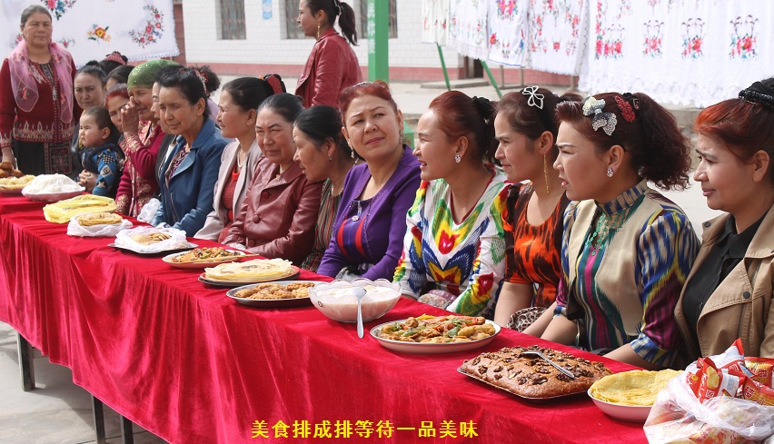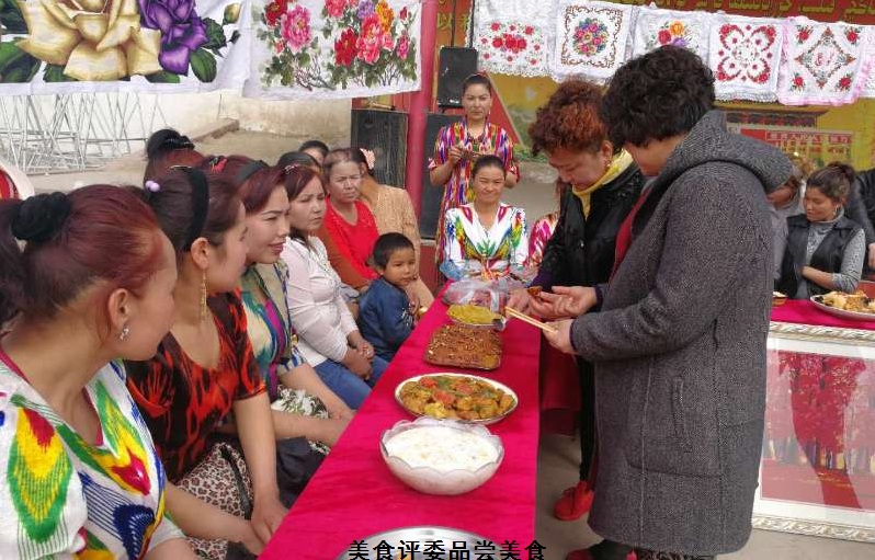 此次活动以“爱的味道”为主题,参赛选手均为家庭主妇。特色肉馕、石榴籽特色抓饭、油炸糯米串、苜蓿饼、干锅土豆、特色酸奶、特色蛋糕等三十余种特色小吃,让活动现场的各族群众享受了一次别具特色的“美食盛宴”。