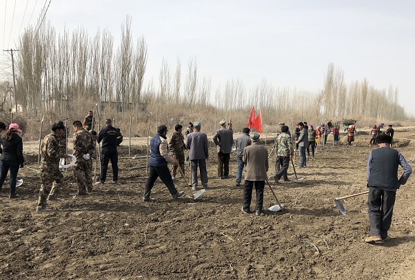 3月19日,阿克苏路政海事局驻苏盖提托喀依村工作队,以“党员先锋日”为契机。在第一书记张军舰同志带领下,工作队成员及全村党员干部,带上劳动工具,开展义务植树活动。