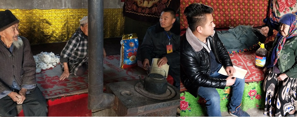 每到一户,工作队队员与村民拉家常,向他们送上节日的祝福和慰问品,把党组织的关心传达给各族群众,并详细了解他们的身体状况和生活状况,认真询问他们遇到的困难,鼓励他们树立战胜困难的信心,争取早日脱贫致富,让他们感觉到党和政府的关怀和温暖。