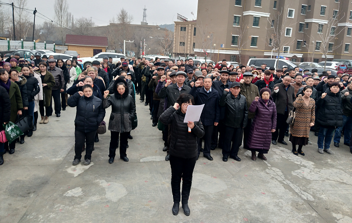 为贯彻落实“公民道德建设月”活动,深入推进公民道德建设,进一步增强居民的公民意识和法律意识,积极营造维护民族志团结和社会稳定的良好氛围,活动中,全体居民和干部面对国旗,齐唱国歌,并举手进行了庄严宣誓。