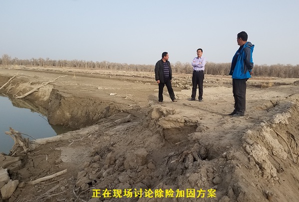 3月18日,哈德墩镇党委书记许平,党委副书记、镇长阿卜来提·萨迪克等一行5人采取现场办公方式,对辖区近80公里防洪责任段进行除险巡查,共排查防洪险段13处,针对每一处险段都认真分析判断,确定除险加固方案,为提前谋划好哈德墩镇2018年防汛工作,确保广大农牧民群众生命财产安全奠定了基础。