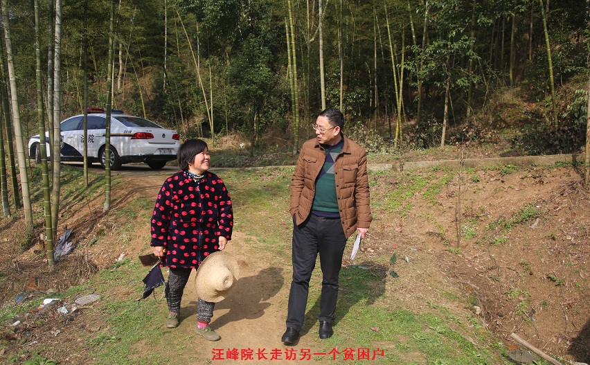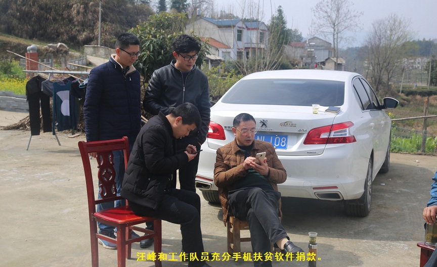 这次,汪峰院长就走访了4个贫困户,还和工作队员一起下载中国扶贫网手机版扶贫软件,通过手机向贫困户捐款扶持。并了解工作队员的工作、生活中的困难,提出解决的意见。在贫困户段介平的家,汪院长了解他家房屋屋面漏水情况,立即记录下来,安排人员迅速解决。图1为汪峰了解贫困户情况。图2为汪峰看房屋漏水现场。图3为汪峰走访贫困户。图4为汪峰和工作队员用手机扶贫软件捐款。