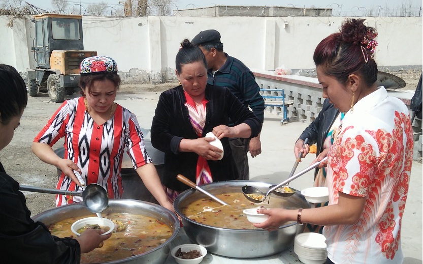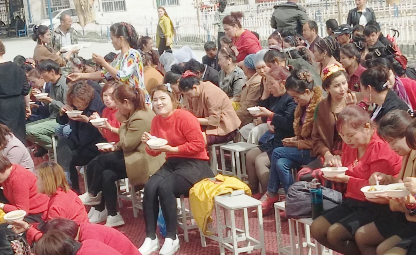 3月21日一大早,沙雅县盖孜库木乡英卡尔坤村穿戴一新的村民们早早齐聚到村委会,他们主动参与到清扫村委大院、布置活动舞台、熬制“诺肉孜饭”中来,以不同寻常的方式迎接2018年诺肉孜节。活动以汉族村带来的舞蹈《母亲是中华》拉开序幕,一个节目比一个节目精彩。各族群众吃着可口的诺肉孜饭,看着欢快的节目,共同祝愿2018年大丰收。