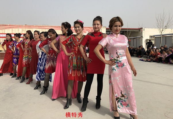 活动中,一首《解放时代》拉开了序幕,随后姑娘们跳起了热情洋溢的维吾尔舞蹈;小品《我们的工作队》向大家讲述了工作队为村民办的实事好事,引导群众享受世俗化、文明化的现代生活;模特秀中旗袍和艾德莱丝绸服饰一起展示中国传统文化和民族特色......