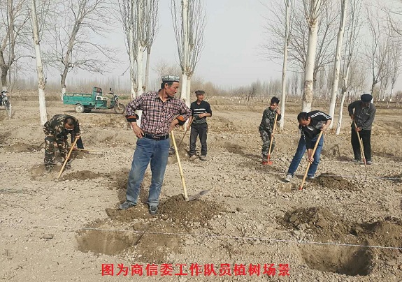 3月22日,沙雅县商务和经济信息化委员会住托依堡勒迪镇英阔克布运村工作队人手一把铁锹来到该村3组与村民共同开展义务植树活动。通过植树造林建设防风固沙绿色长廊,让干部群众深刻认识到“绿水青山就是金山银山”道理。