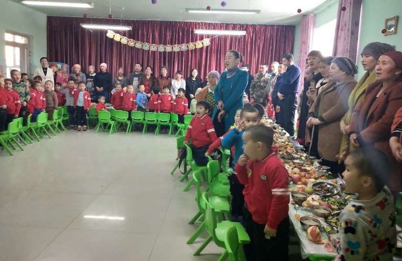 融情活动在国歌声中拉开了序幕,第二环节拉斯特乡中心双语幼儿园园长巴特木汗讲祝福话、第三环节幼师、幼儿和家长集体舞蹈、独舞,独唱、朗诵等十余个丰富多彩的节目,载歌载舞欢度纳吾热孜节。第四环节党的十九大有奖知识问答活动等。