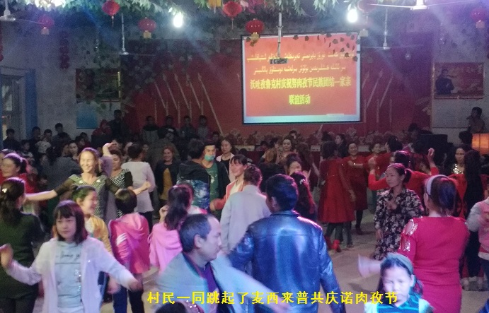 热孜玩古丽·艾买尔是沃吐孜鲁克村新调整的工作队员,今天是她初次主持喜庆诺肉孜节联谊晚会,与村民一同庆祝节日。在诺肉孜节上,热孜万古丽组织村民做了大锅诺肉孜饭,吃完香喷喷的诺肉孜饭后,热孜万古丽主持大家一同歌唱《国歌》,随后进行了两男背对背式拔河比赛、20名男女分组开展抢板凳比赛、爱的抱抱小游戏等,随后主持人邀请本村妇女党员为诺肉孜节在场群众献上自编自演诗朗诵,在热烈的掌声中,随着欢快的音乐声响起,村民们伴着诺肉孜的春天舞曲相继跳起了麦西来甫,那场面别说有多热闹了!