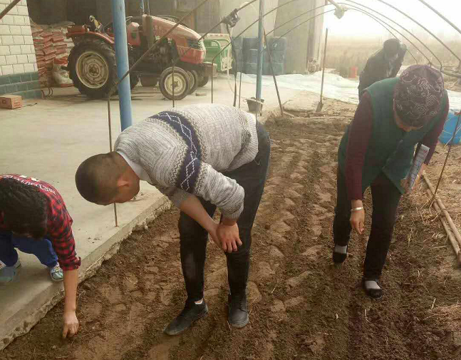清风网讯:(沙雅县邮政局 朱壮壮)3月23日,沙雅县邮政局驻吐央村工作队和下沉干部在入户走访时,看到二组村民海龙家院子里有一片小菜园,一家人都正在菜园里种菜,工作队队员和下沉干部赶紧上前帮忙。