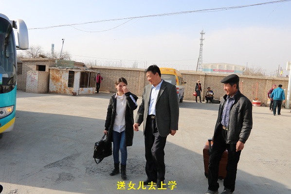 2018年3月2日是阿热孜古丽返校的日子,马士军和阿热孜古丽的父母一同去车站为她送行,临上车前,马士军担心“女儿”学习辛苦,又给“女儿”塞了500元钱,嘱咐她好好学习,照顾好自己。“女儿”阿热孜古丽也对“老爸”马士军说“老爸,您工作很辛苦,一定要注意身体,尤其是您的膝盖不好,千万要注意啊!”送走了“女儿” 阿热孜古丽,马士军立即安排在乌鲁木齐的爱人和女儿第二天去车站接阿热孜古丽。