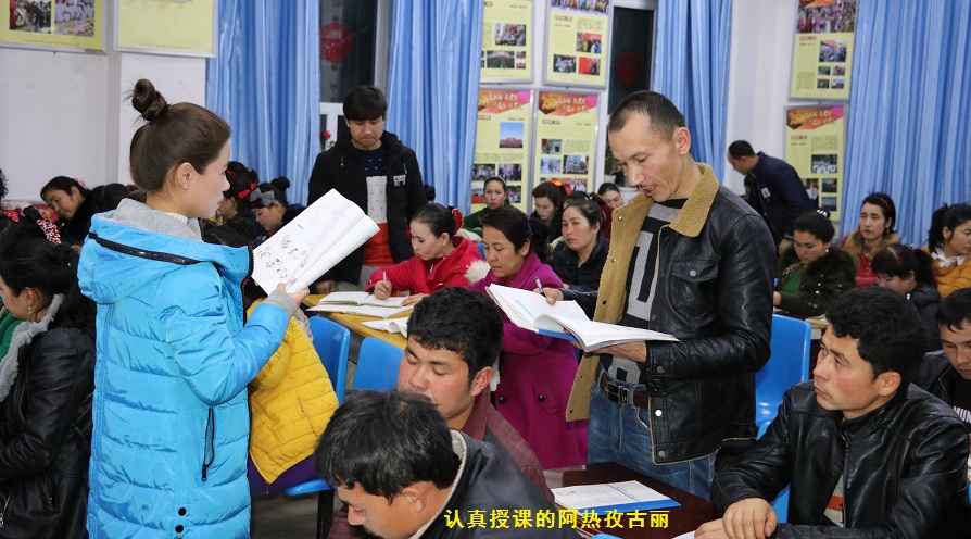 今年年初,阿热孜古丽寒假回到村里,看到“老爸”马士军每天工作很辛苦,于是她主动提出帮工作队给村里的乡亲们教授国家通用语言,来帮助“老爸”减轻工作负担。阿热孜古丽每天都认真备好课,耐心细致的授课,课后又悉心辅导,表现出了一名合格教师的专业素养和水平,在阿热孜古丽和工作队的共同努力下,村民们的国家通用语言读写水平有了明显的提升,“老爸”马士军对“女儿”阿热孜古丽的表现也是赞赏有加。