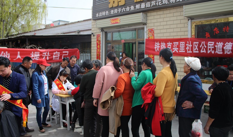 铁热克买里社区除开展当日的集中宣传活动外,还组织志愿者深入各街巷开展清除牛皮癣、清除卫生死角、打扫环境卫生;到辖区主要交通路口开展文明礼仪劝导;并通过在社区服务大厅开展“岗位学雷锋、争当好职工”和“共产党员先锋岗”活动,立足岗位,创先争优,做到“我的岗位我负责,我的岗位请放心”活动等方式,广泛宣传公民道德基本规范和社会主义核心价值观。